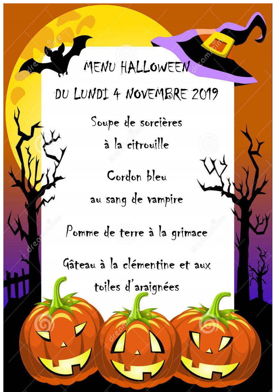 l'APE organise le repas d'Halloween le Lundi 4 Novembre 2019. Bon appétit